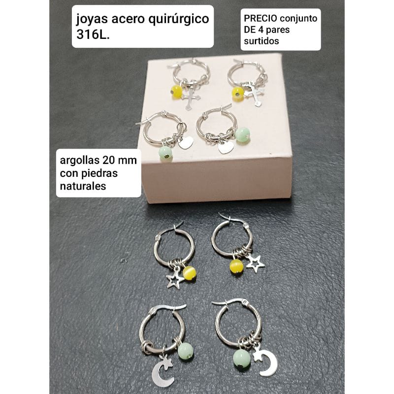 Aros LucMD. Argollas con dijes y piedras. Conjunto de 4 pares.