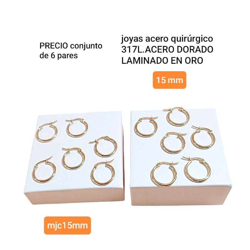 / Aros MJC. Argollitas 15mm. Conjunto de 6 pares.