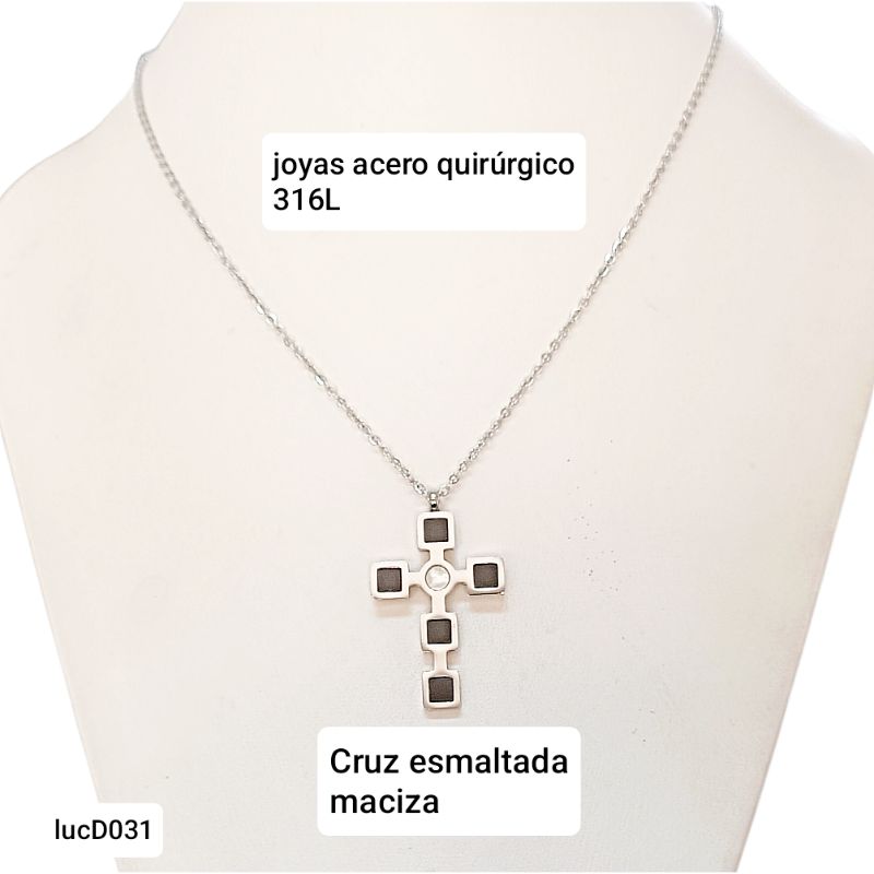 / Conjunto LucMD D031. Cadena con dije cruz esmaltada.