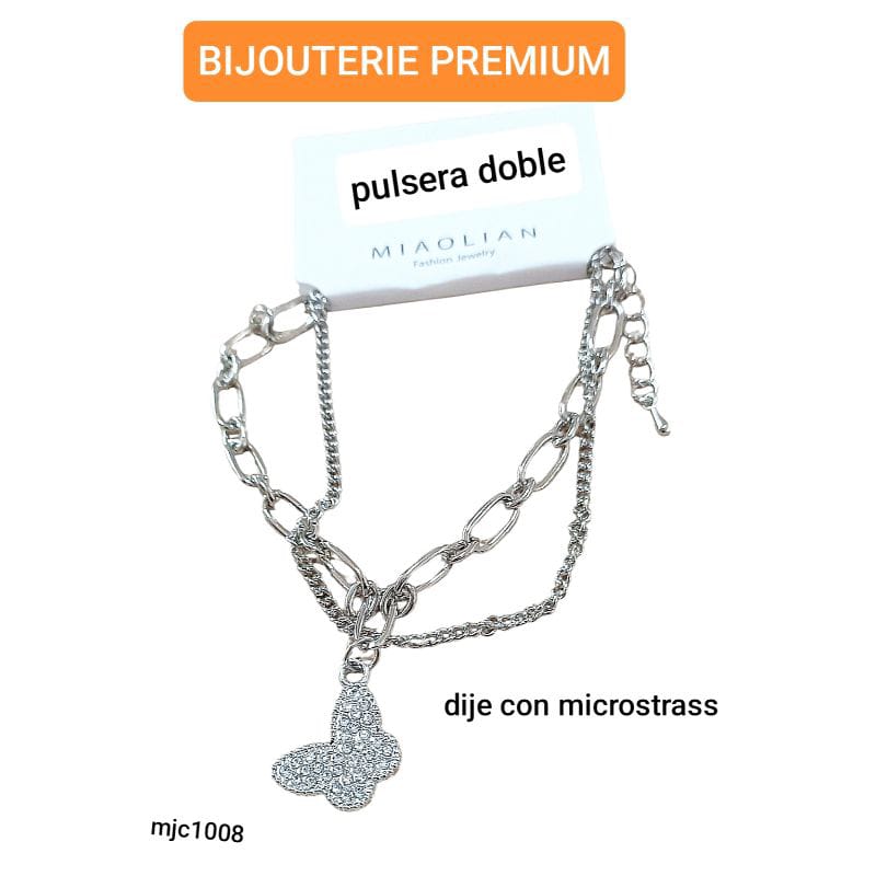 / Pulsera MJC 1008. Cadena doble con dijes mariposas.
